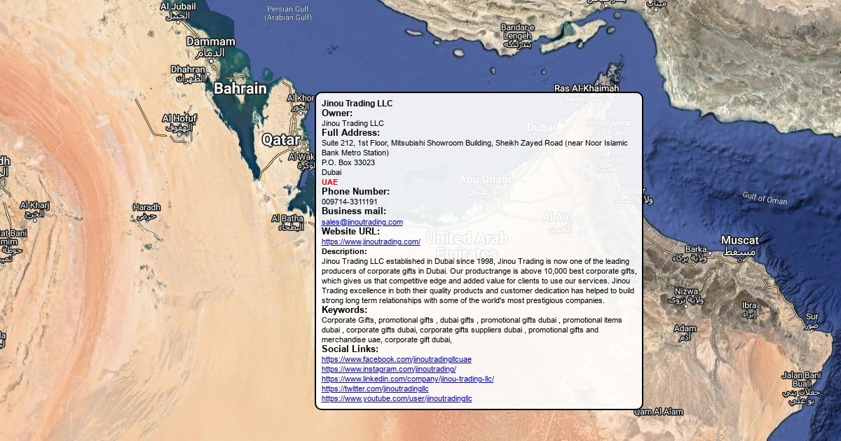 Jinou Trading LLC established in Dubai since 1998, Jinou Trading is now one of the leading producers of corporate gifts in Dubai. Our productrange is above 10,000 best corporate gifts, which gives us that competitive edge and added value for clients to use our services.