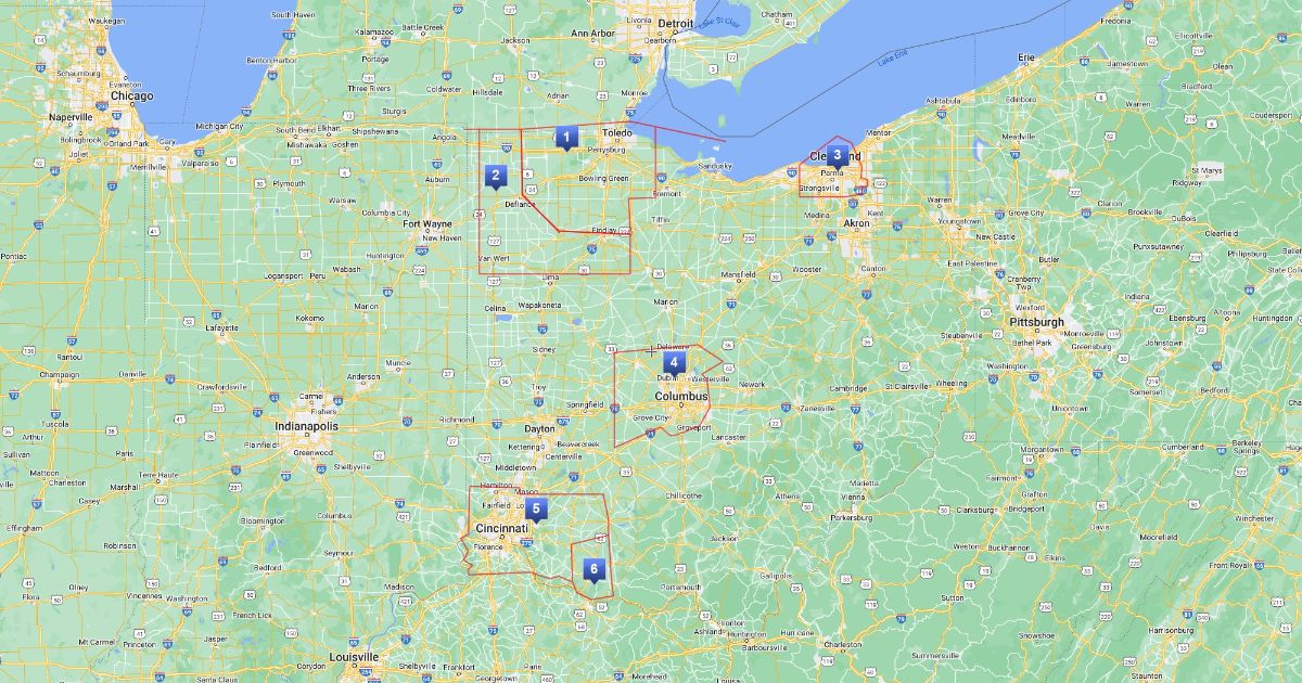 Cleveland, Cleves, Columbus, Toledo