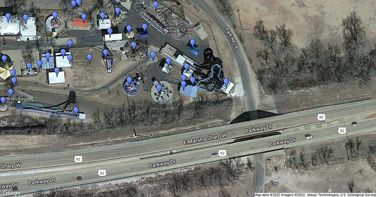 Welcome to Joyland Amusement Park. This is a small park with over 30 fun rides and attractions. On this map you are able to see all labels of these rides and attractions and all other buildings like the office and party room. We also labeled picnic areas as well. Same with crosswalks. You can also click on the button labeled Joyland Amusement Park to see the Hours, prices and the days we open. You can also click on the link that says Get Directions Here. This will take you to Google maps and show you the directions. Don't forget to celebrate this season being our 50th year of fun at joyland. Have fun whenever you come to Joyland Amusement Park, located in Makenzie Park Lubbock, TX.