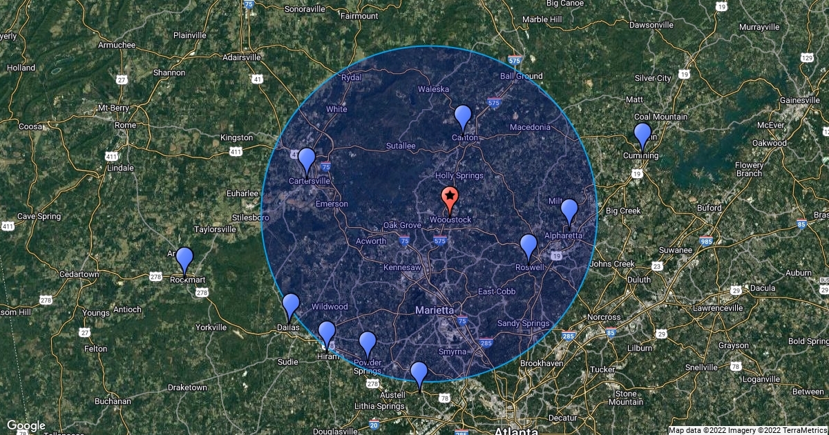 Radius of Juan's areas of services