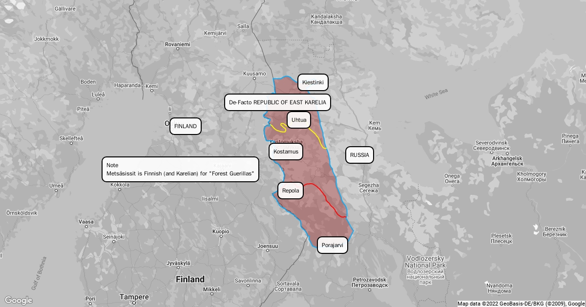 Rough outline of the advance of the Karelian Forest Guerillas in 1921-1922 (part of the Finnish Heimosodat)