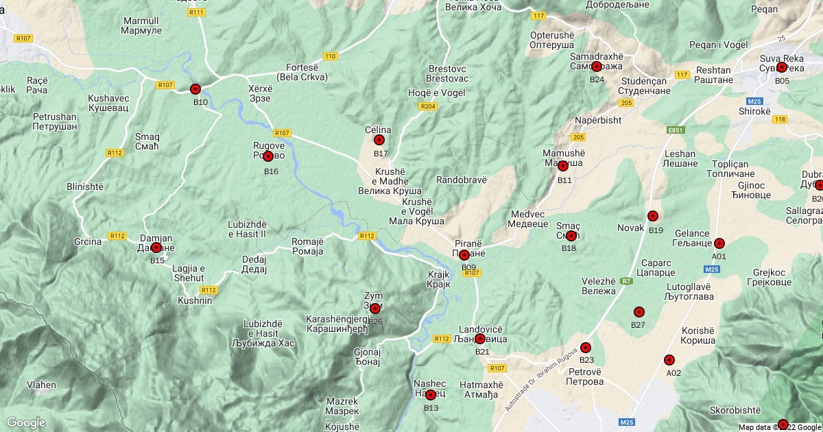Kosovo waypoints map