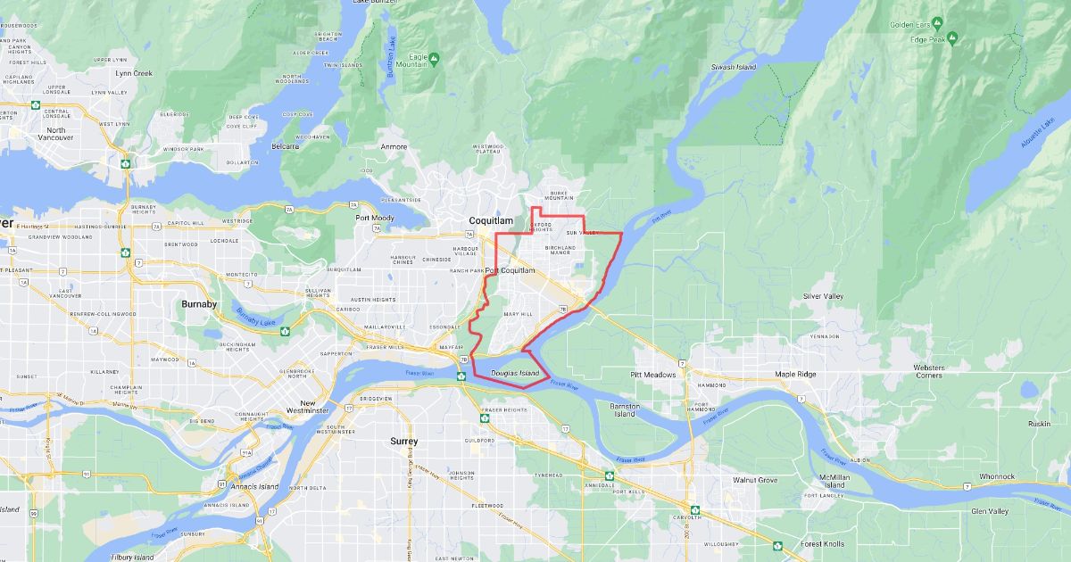Le contour de la ville de Port Coquitlam en C.-B.