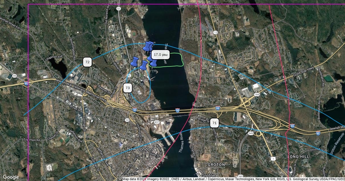 Plot #3 should be a map with points showing where your samples were collected. The river should be contoured to show either temperature or salinity gradients. The weather data should be contoured to show isobars and isotherms.