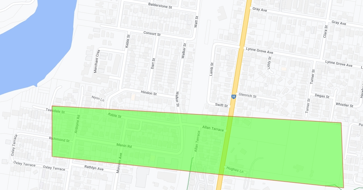 It shows the recreational,residential,commercial and educational area in Corinda.