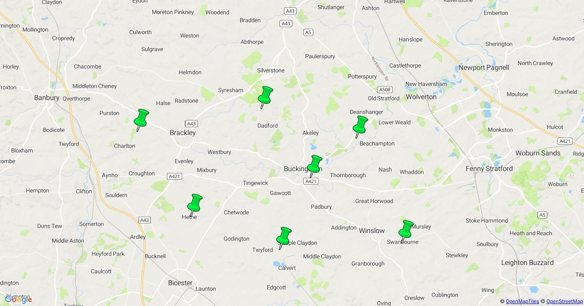 Pins showing location of landowner contacts from Karen Patterson