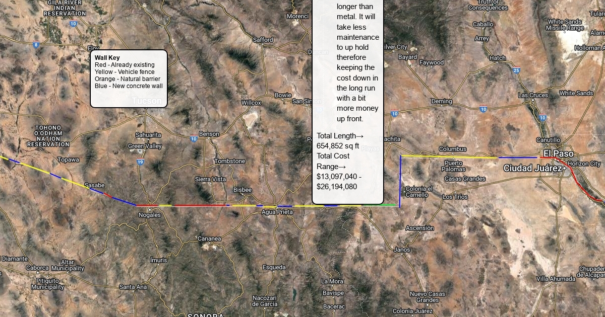 Distance of wall on us border