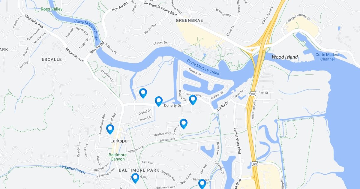 One of the most spectacular features of houses in Larkspur is the scenery surrounding them. Redwoods rule in Larkspur. In Baltimore Park and Baltimore Canyon, giant redwoods grow straight out of the road, while the streets gently curve their way around these massive trees. Tucked away under the redwoods beneath Mount Tamalpais, Larkspur boasts a great dining scene. The main street, Magnolia Avenue, is a vibrant destination for food lovers who frequent restaurants such as Pizzeria Picco, Emporio Rulli, and the Left Bank Brasserie. The Lark Theater, also on Magnolia, has been restored to its art-deco glory by a community effort and screens first-run films.   The Larkspur and Corte Madera Creek paths run a few blocks parallel to Magnolia on a former railroad right of-way and are popular with families, dog walkers, and bikers on their way to Point Reyes.