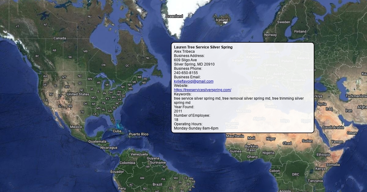 Owner Name: Alex Tribeca Business Address: 609 Sligo Ave Silver Spring, MD 20910 Business Phone: 240-650-8155 Business Email: [email protected] Website: https://treeservicesilverspring.com/ Keywords: tree service silver spring md, tree removal silver spring md, tree trimming silver spring md Year Found: 2011 Number of Employee: 18 Operating Hours: Monday-Sunday 8am-6pm