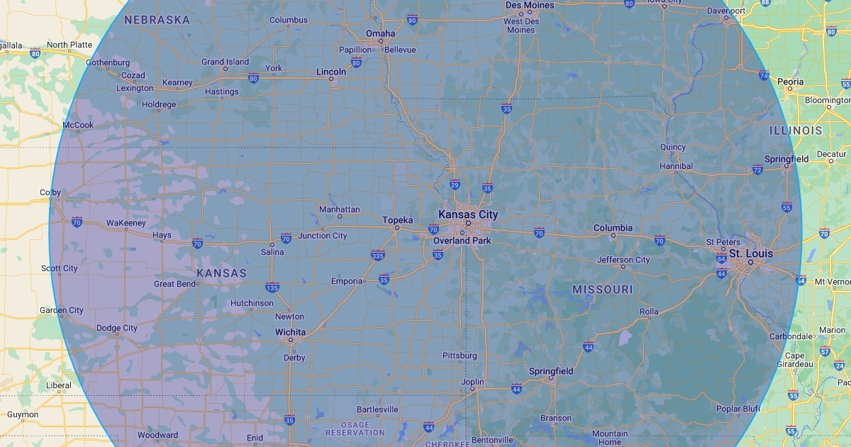 5 Hour Drive Radius from Lawrence, KS