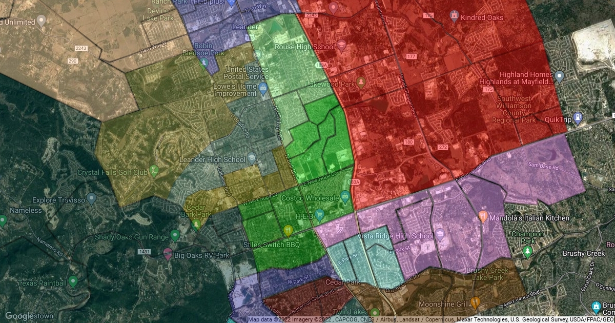 A map of all schools within the Leander Independent School District. Includes feeder pattern 2010-2011.