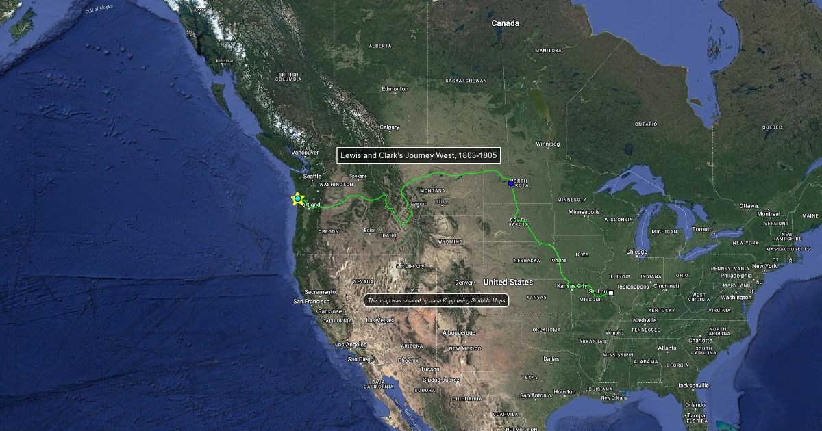 The Lewis and Clark trail of getting to the Pacific Ocean (not back)