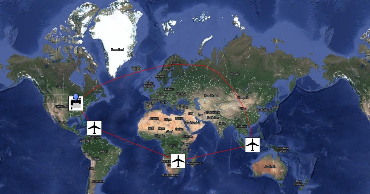 Local map from home to relief locations to airport