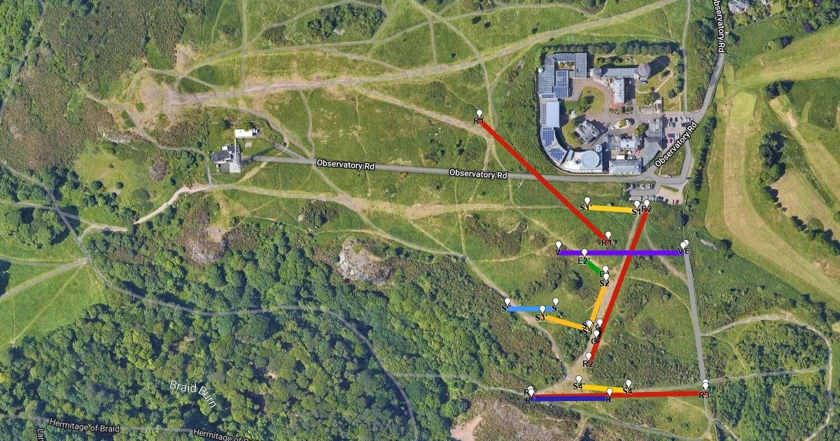 I've made this map for my geophysics field report where we investigated the ground properties using many different methods.