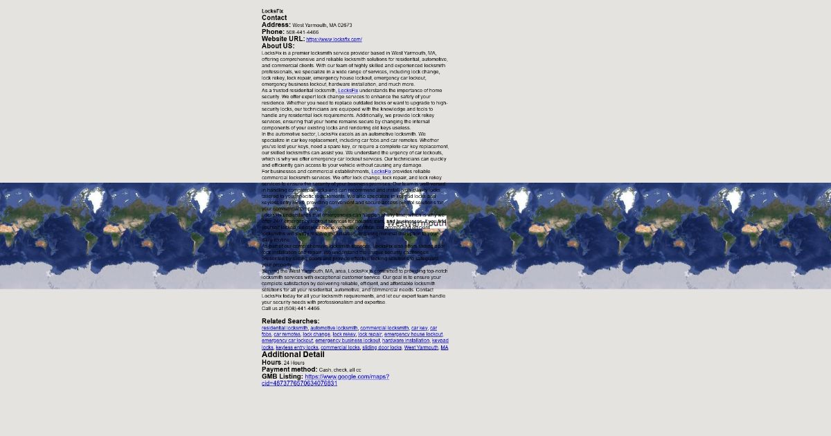 LocksFix is a premier locksmith service provider based in West Yarmouth, MA, offering comprehensive and reliable locksmith solutions for residential, automotive, and commercial clients. With our team of highly skilled and experienced locksmith professionals, we specialize in a wide range of services, including lock change, lock rekey, lock repair, emergency house lockout, emergency car lockout, emergency business lockout, hardware installation, and much more.