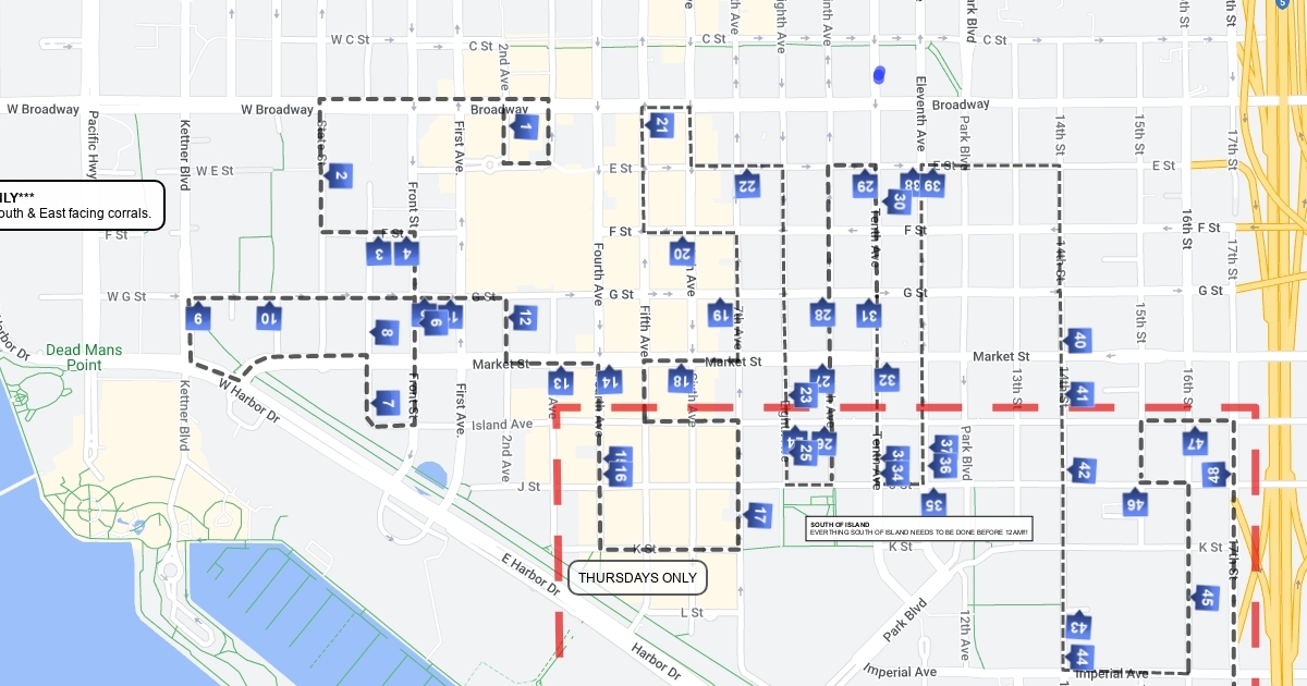This Map is for ***THURSDAY'S ONLY***All South & East facing corrals!