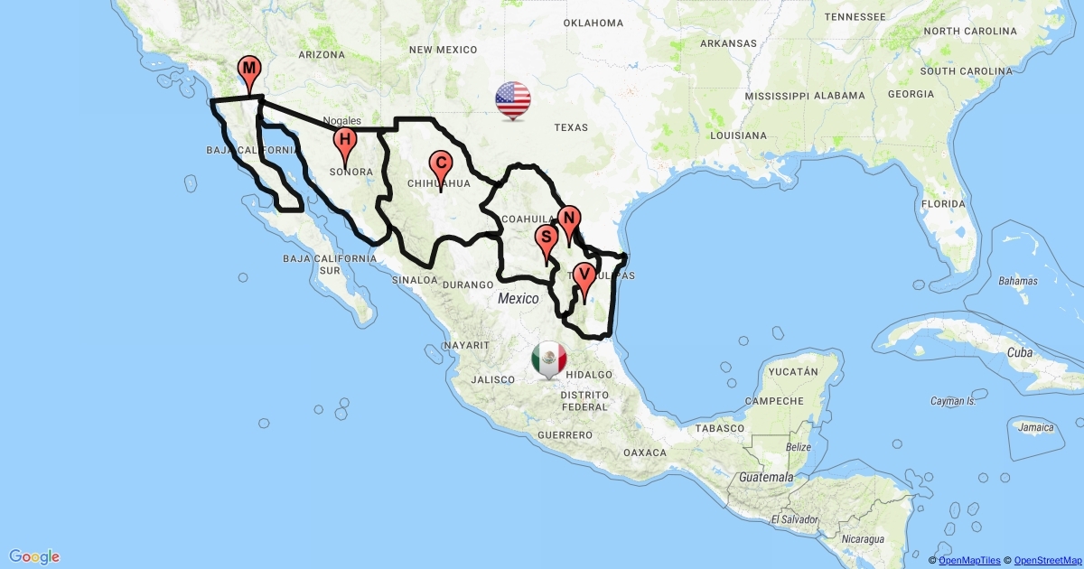 Demostramos aquí todos los estados de la republica mexicana que colindan con Estados unidos
