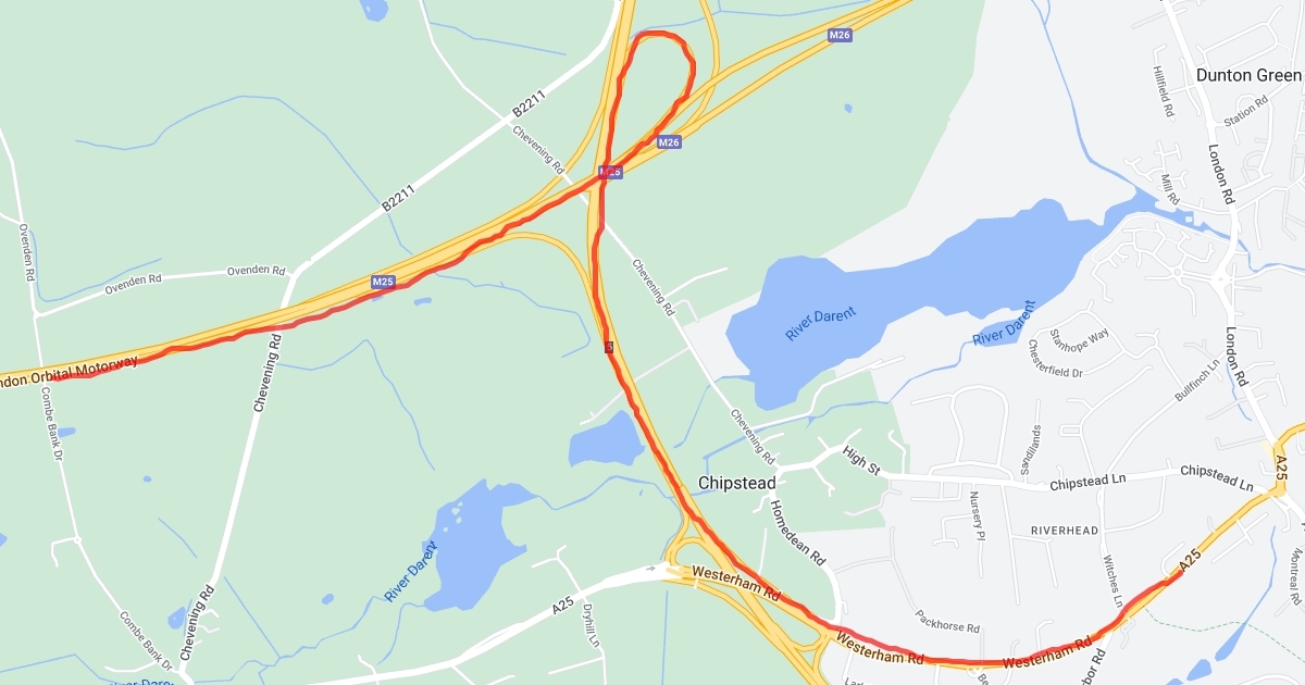 Shows coming off M25 to Sevenoaks