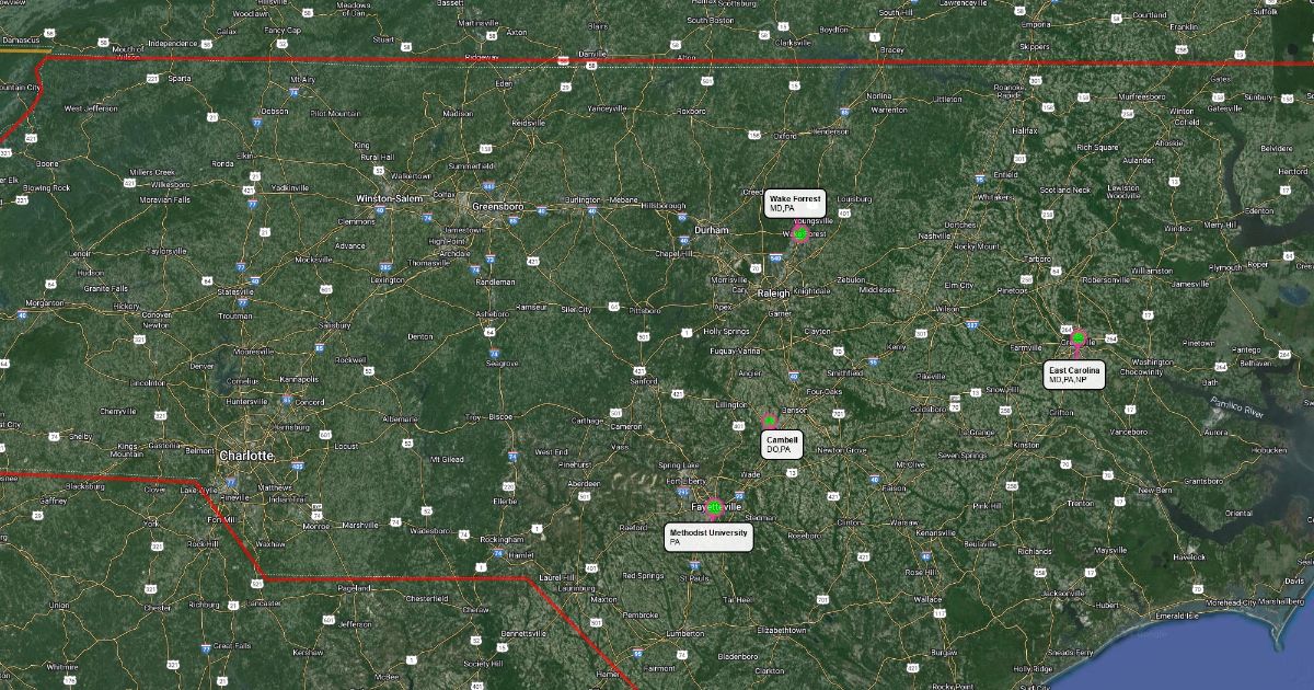 Highlight NC and all schools surrounding for medical programs