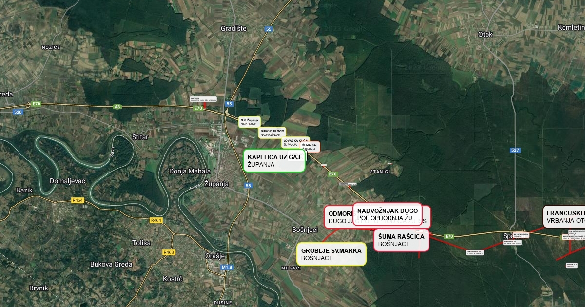 MAPA SA TOČKAMA ŽUPANJE I VRBANJE
