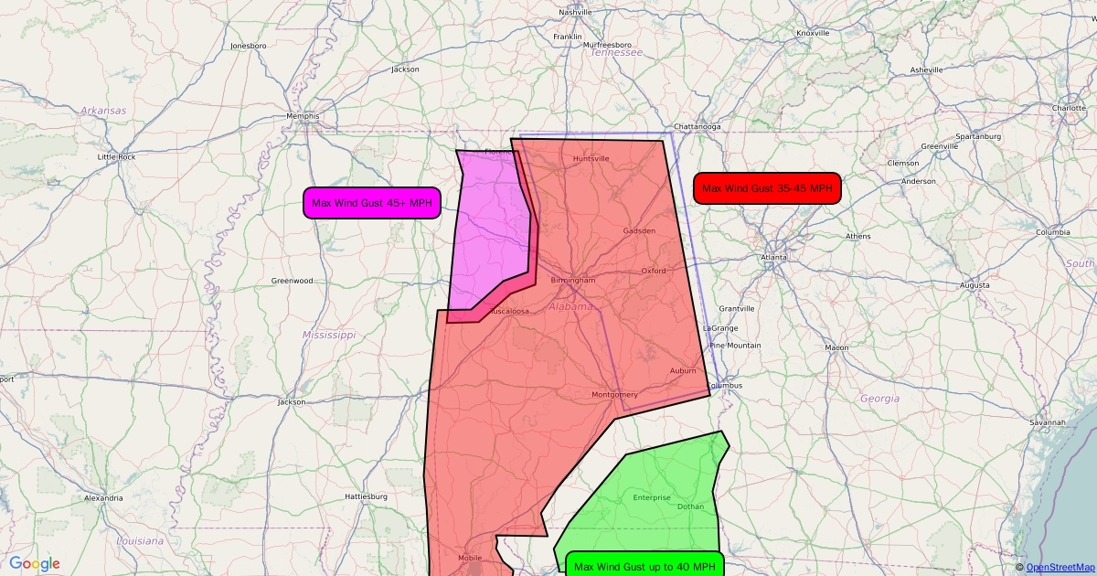Wind Gust Map for AL