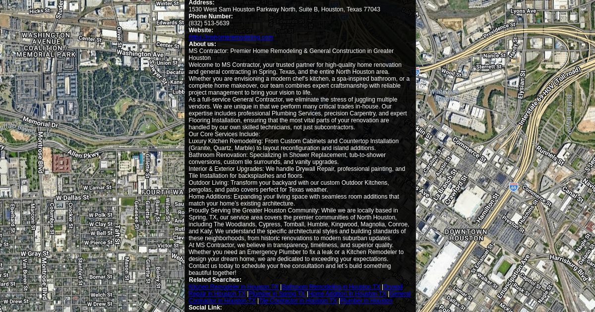 MS Contractor: Premier Home Remodeling & General Construction in Greater Houston Welcome to MS Contractor, your trusted partner for high-quality home renovation and general contracting in Spring, Texas, and the entire North Houston area. Whether you are envisioning a modern chef’s kitchen, a spa-inspired bathroom, or a complete home makeover, our team combines expert craftsmanship with reliable project management to bring your vision to life.