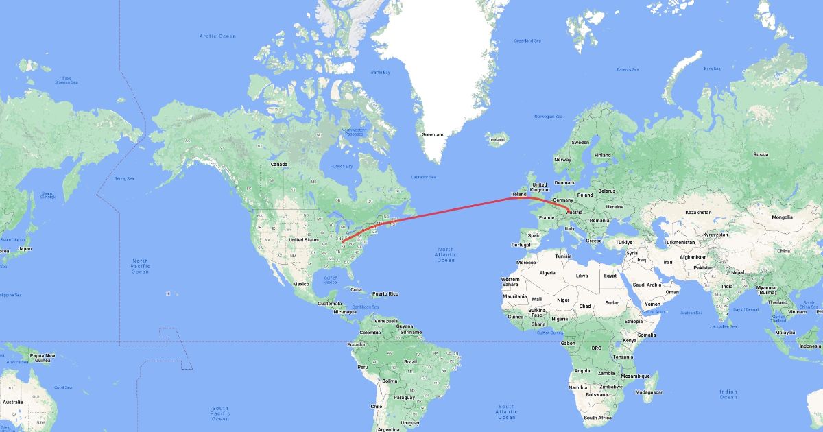 Munich to Cincinnati Flight Path