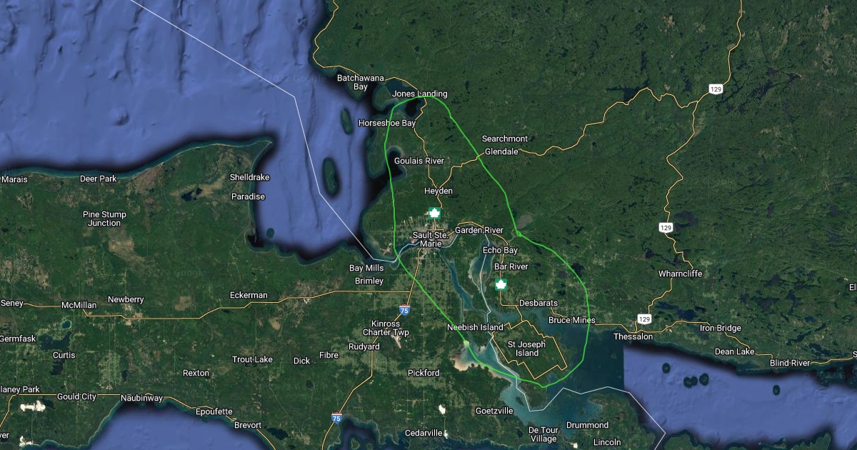 this map is in the Sault Ste. Marie , Goulais River and St. Joseph Island area