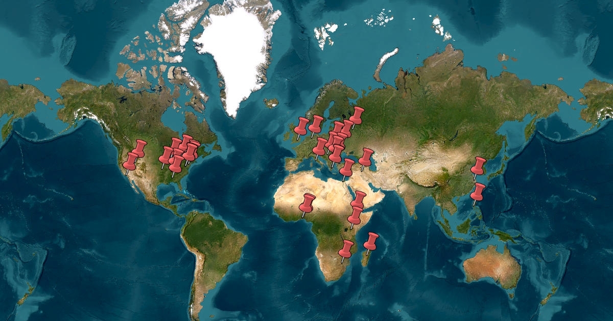 The 40 pins are the headquarters of the largest Christian denominations.