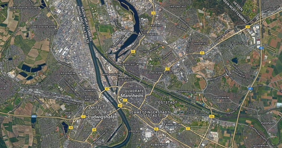 Aerial/Satellite map of Mannheim. For the smart city case study.