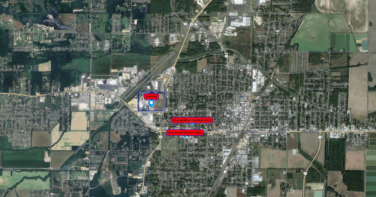This is a map of all the schools in central Paragould, AR.
