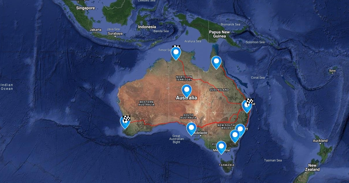 Detailed map of how to get to different cities in Australia