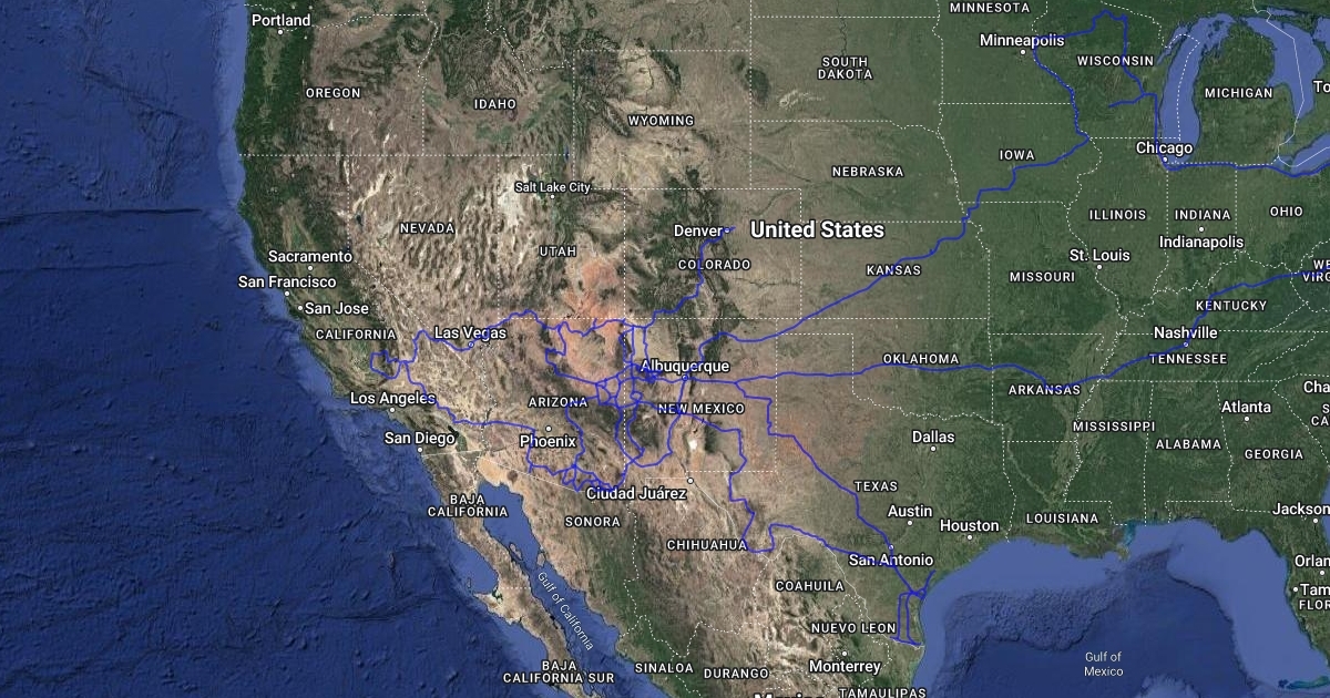 Map showing all roads I have traveled in the US.