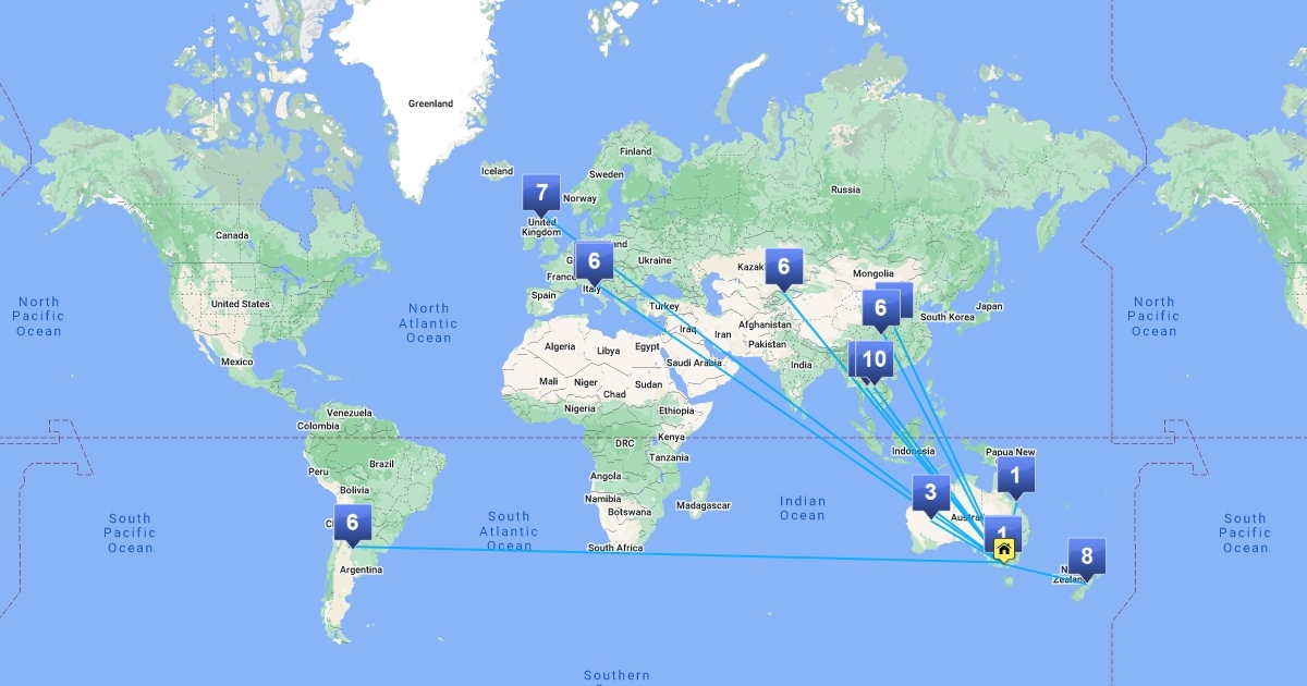 This map shows the places where different items from my kitchen come from around the world