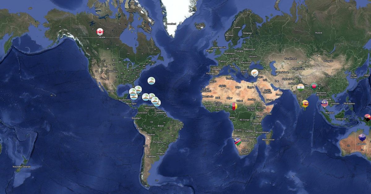 Map with 10 Commonwealth countries and Caribbean Islands
