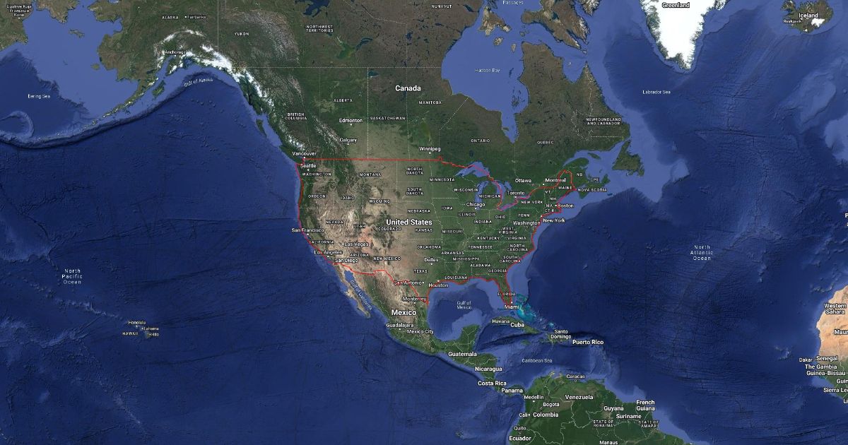 Map with red outline of border