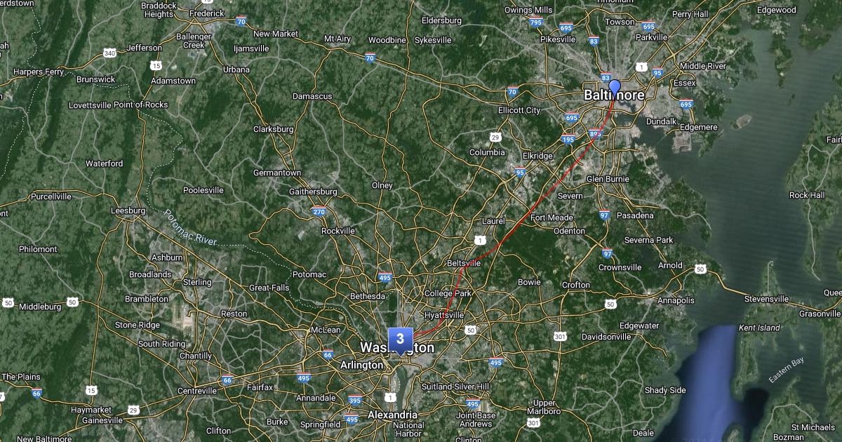 This map is showing you points from the American History museum in washing D.C to federal hill
