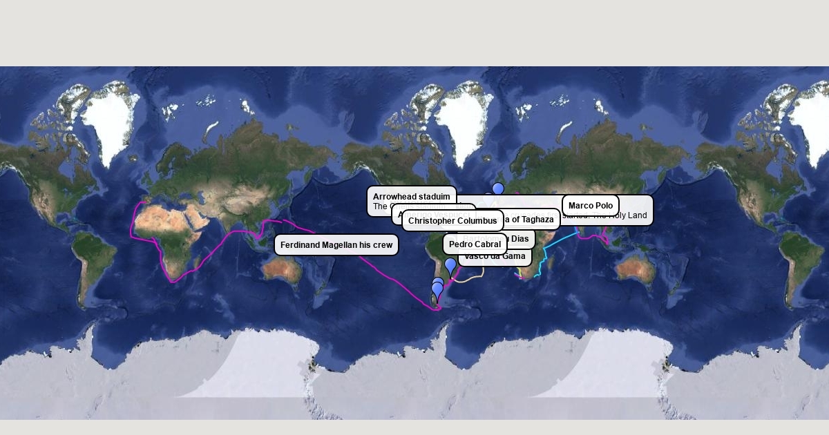 Map of explorations and important events