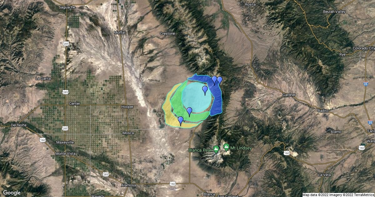 This map features the primary components of the geological features of the Great Sand Dunes National Park located in Colorado, USA.