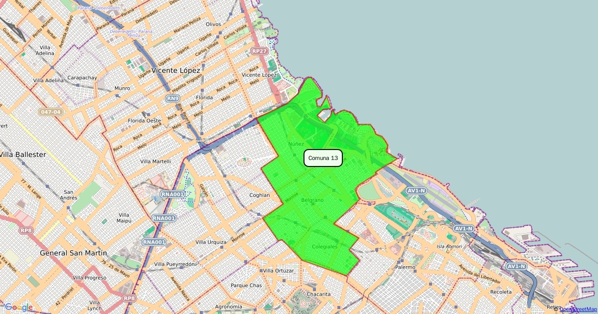 Mapa con la Comuna 13 demarcada con un polígono, para el TP final de la Unidad 1 de Geografía