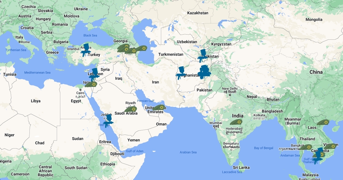 Mapa sobre las guerras ocurridas en Asia, durante el siglo XX y XXI