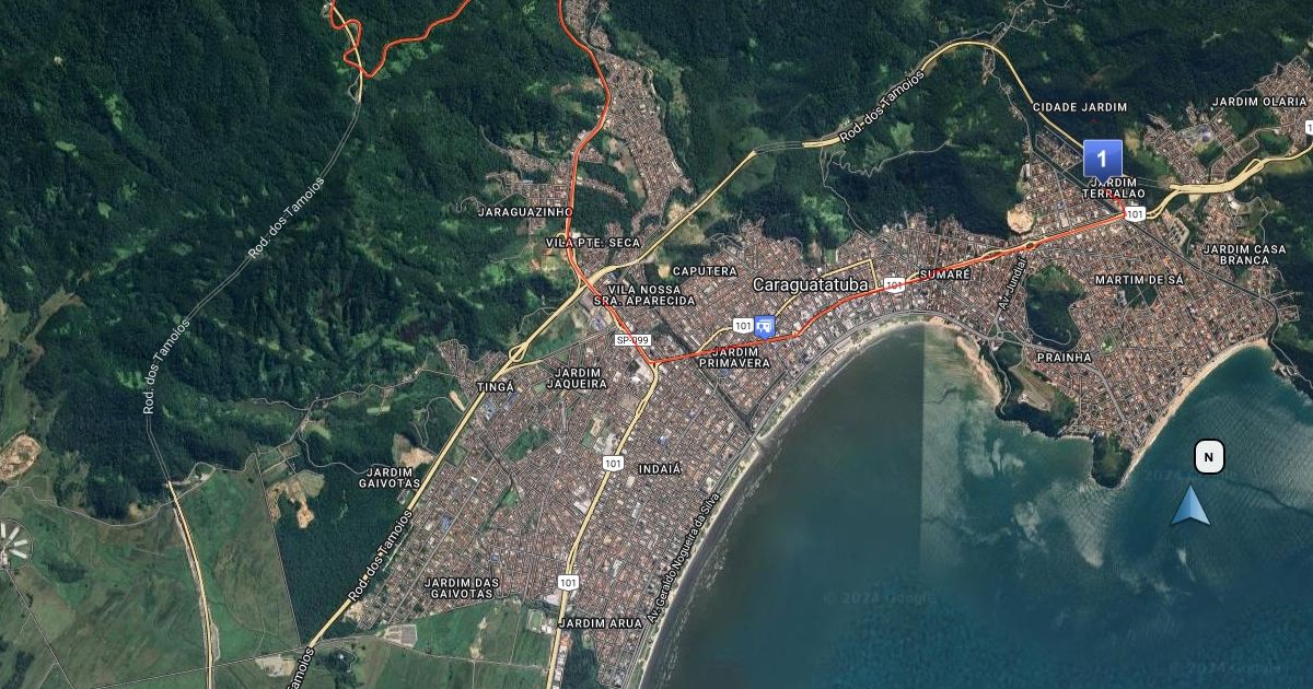 Mapa de viagem entre Caraguatuba ao Pouso Alto