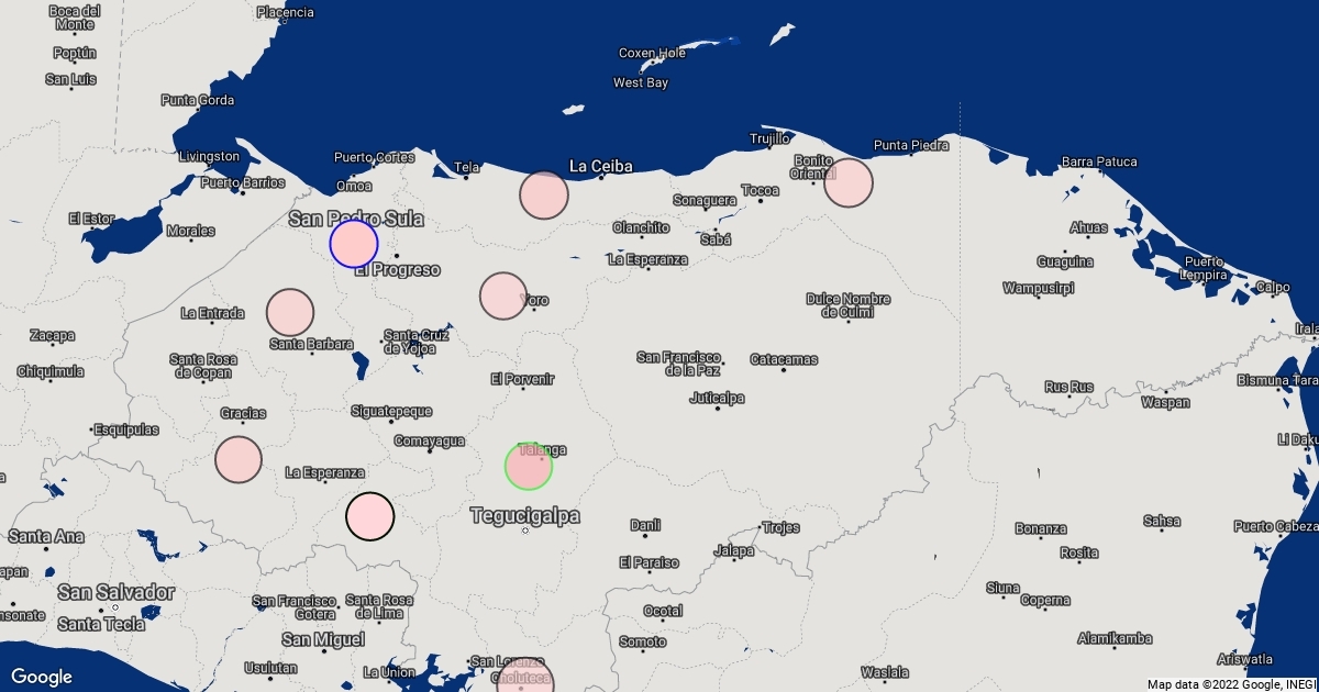 Mapa de casos de COVID-19 en Honduras.