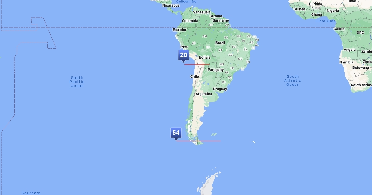 Mapa con las latitudes donde se ha encontrado P. fascia en Chile