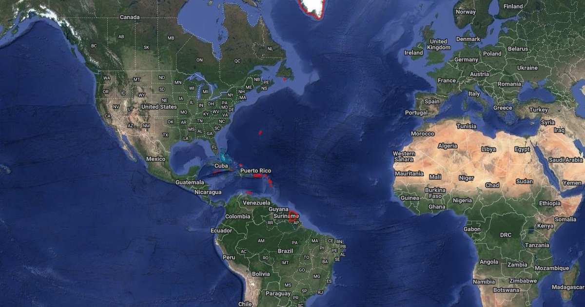 Mapa con países de dependencia marcados.