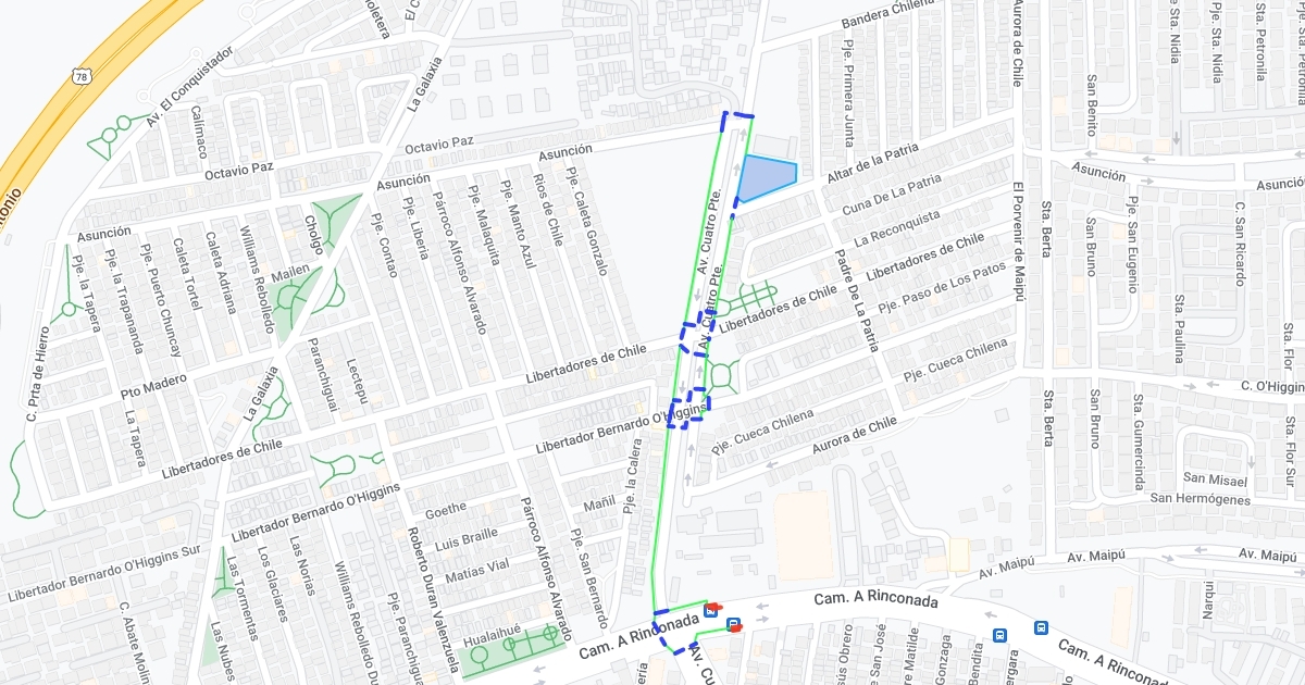 Camino Rinconada por Av. Cuarto Poniente hasta el cruce con Asunción