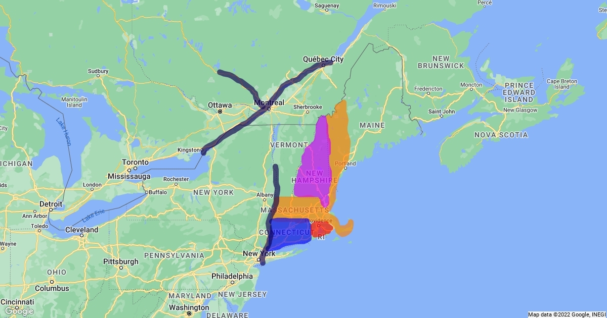 New England Colonies mapped