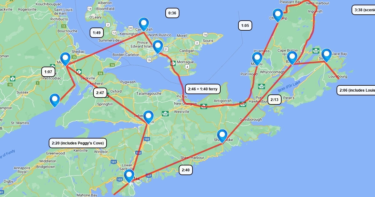 Possible route with driving times