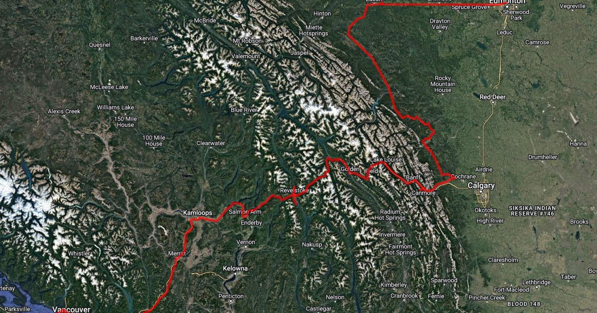 Some meandering through the Alberta foothills then off to the island.