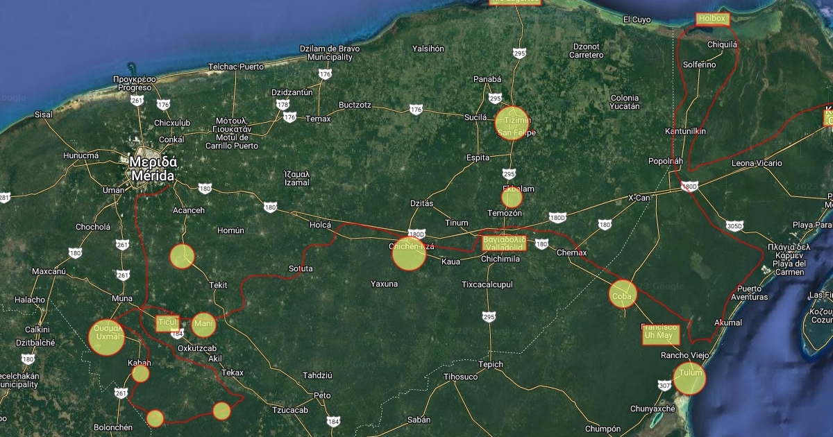 Squares are places stayed, Circles are places just visited